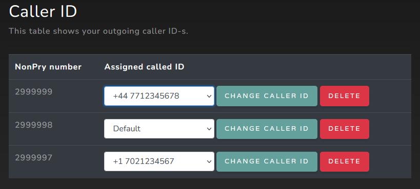 Select the desired Caller ID from the drop-down menu under "Assigned Caller ID" and click on the "Change Caller ID" button next to it.